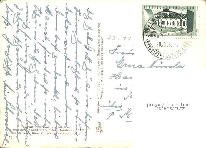 72409439 alte Postkarte Weingarten Baden Benediktinerkloster Kirche postalisch gelaufen Erhaltung siehe scans KatCode: 11110008215090