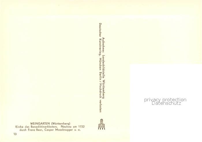 73626920 Weingarten Baden Benediktinerkloster Kirche postalisch nicht gelaufen Erhaltung siehe scans [LiesaD40] KatCode: 11110008215090