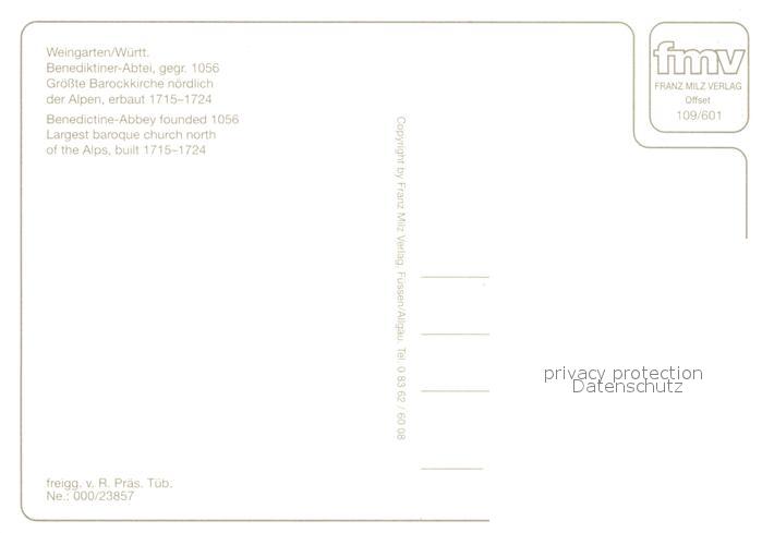 73227261 Weingarten Baden Fliegeraufnahme Benediktiner-Abtei postalisch nicht gelaufen Erhaltung siehe scans [LiesaD40] KatCode: 11110008215090