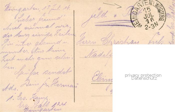 42986000 alte Postkarte Weingarten Baden Soldat postalisch gelaufen Feldpost Erhaltung siehe scans [AndreD76] KatCode: 11110008215090