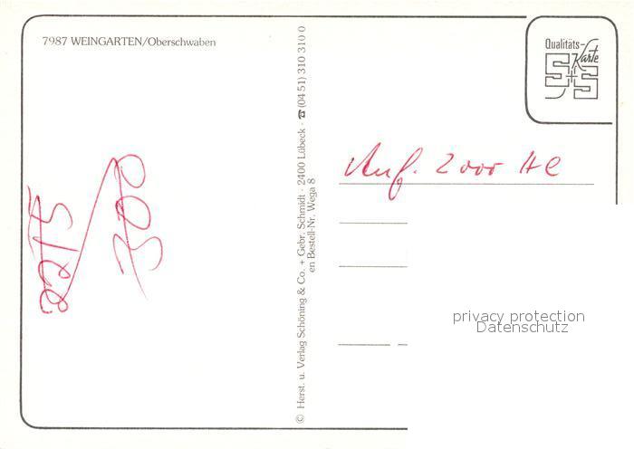 73227257 Weingarten Baden postalisch nicht gelaufen Erhaltung siehe scans [LiesaD40] KatCode: 11110008215090
