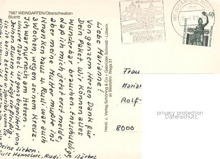 73780754 alte Postkarte Weingarten Wuerttemberg Blutritt postalisch gelaufen Erhaltung siehe scans [WerneD78] KatCode: 11110008436082