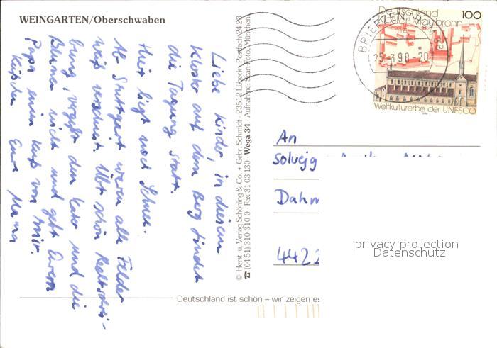 71831751 alte Postkarte Weingarten Wuerttemberg Fliegeraufnahme postalisch gelaufen Erhaltung siehe scans KatCode: 11110008436082
