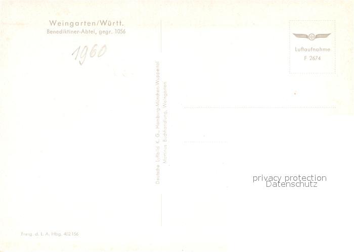 72961775 Weingarten Wuerttemberg Fliegeraufnahme Benediktiner Abtei postalisch nicht gelaufen Erhaltung siehe scans [LiesaD40] KatCode: 11110008436082