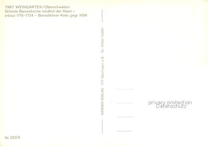 73271842 Weingarten Wuerttemberg Fliegeraufnahme mit Benediktiner Abtei postalisch nicht gelaufen Erhaltung siehe scans [WerneD78] KatCode: 11110008436082