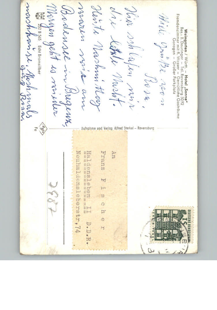 31155188 Weingarten Wuerttemberg Hotel Sonne postalisch nicht gelaufen KatCode: 11110008436082