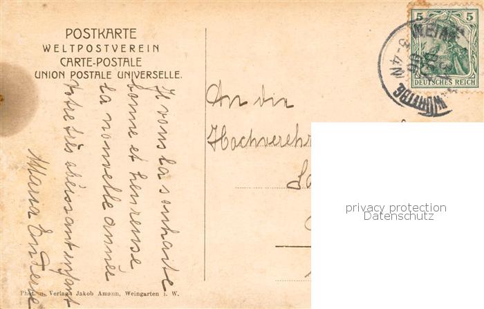 73812521 alte Postkarte Weingarten Wuerttemberg Kath Kirche und Kaserne des 6 wuerttemb Inf Regts No 124 postalisch gelaufen Erhaltung siehe scans [FriedD77] KatCode: 11110008436082