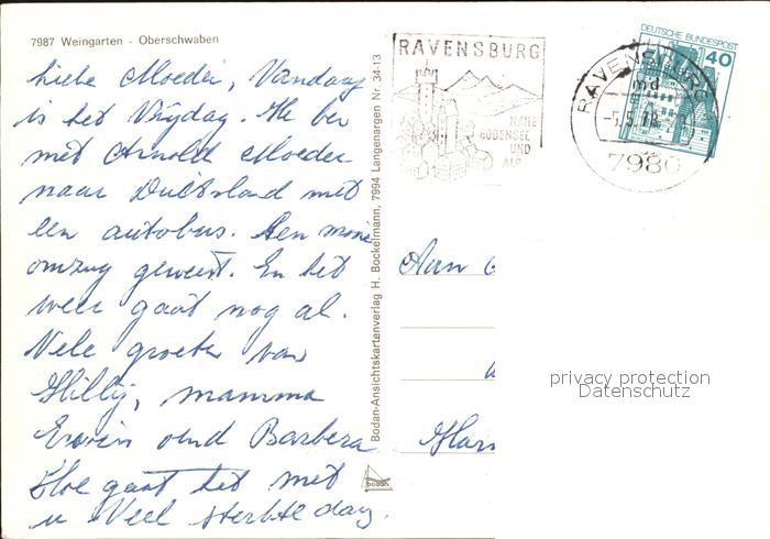 72464250 alte Postkarte Weingarten Wuerttemberg Kirche Inneres Blutfreitag Ritt Hof zum Hirsch postalisch gelaufen Erhaltung siehe scans KatCode: 11110008436082
