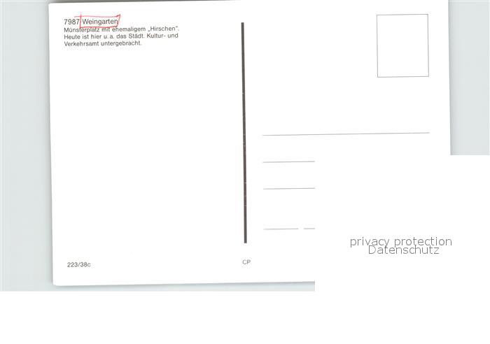 72581135 Weingarten Wuerttemberg Muensterplatz mit ehemaligem Hirschen postalisch nicht gelaufen Erhaltung siehe scans [FriedD77] KatCode: 11110008436082