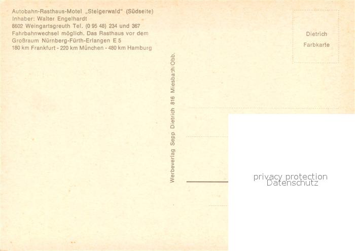73726014 Weingartsgreuth Autobahn Rasthaus Motel Steigerwald Terrasse postalisch nicht gelaufen Erhaltung siehe scans [FriedD77] KatCode: 11110009572160