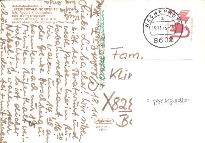 72032857 alte Postkarte Weingartsgreuth Autobahn Rasthaus Steigerwald Nordseite Fliegeraufnahme postalisch gelaufen Erhaltung siehe scans KatCode: 11110009572160