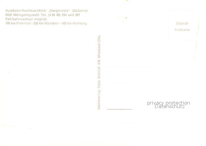 73543690 Weingartsgreuth Autobahn Rasthaus Steigerwald postalisch nicht gelaufen Erhaltung siehe scans [WerneD78] KatCode: 11110009572160