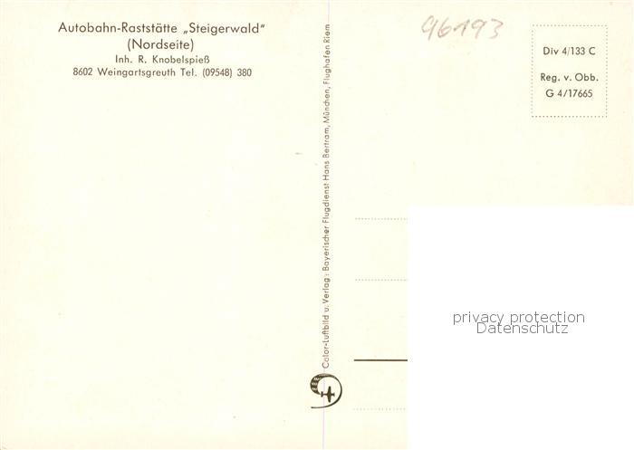 73853703 Weingartsgreuth Autobahn Raststaette Steigerwald Fliegeraufnahme postalisch nicht gelaufen Erhaltung siehe scans [WerneD78] KatCode: 11110009572160