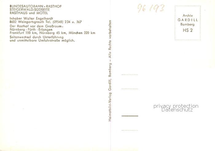 73853704 Weingartsgreuth Bundesautobahn Rasthof Steigerwald Motel postalisch nicht gelaufen Erhaltung siehe scans [WerneD78] KatCode: 11110009572160