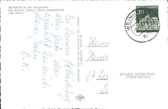 72222312 alte Postkarte Weinheim Bergstrasse aelteste Libanon Ceder Deutschlands postalisch gelaufen Erhaltung siehe scans KatCode: 11110008226096