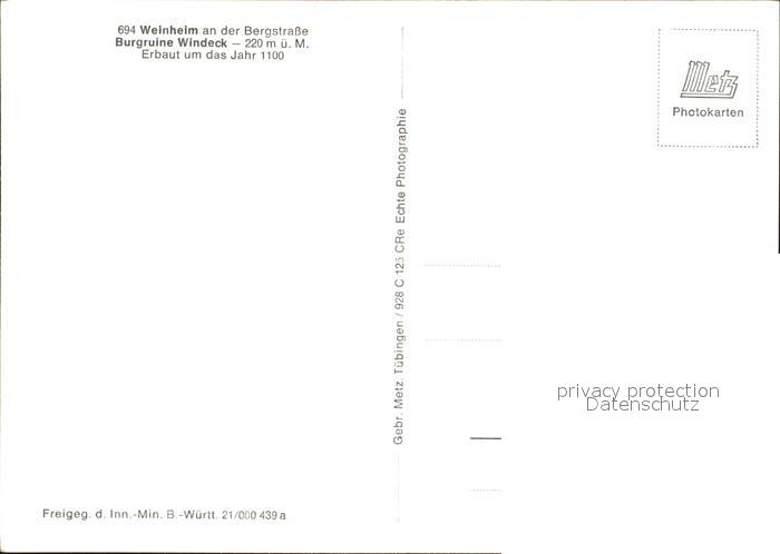 72506378 Weinheim Bergstrasse Burgruine Windeck postalisch nicht gelaufen Erhaltung siehe scans KatCode: 11110008226096