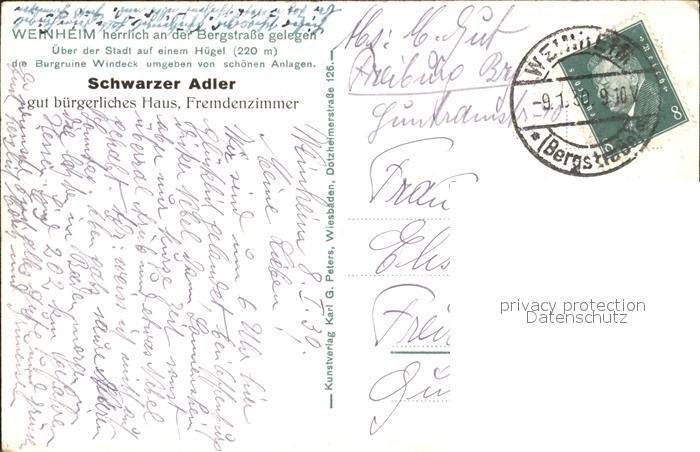 72096283 alte Postkarte Weinheim Bergstrasse Burgruine Windeck postalisch gelaufen Erhaltung siehe scans KatCode: 11110008226096