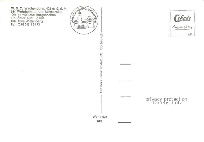 74019014 WEINHEIM Bergstrasse BW W.S.C. Wachenburg Burgschenke Ausflugsort postalisch nicht gelaufen Erhaltung siehe scans [FriedD77] KatCode: 11110008226096