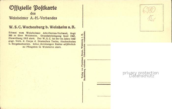 72096270 Weinheim Bergstrasse Festsaal W. S. C. Wachenburg postalisch nicht gelaufen Erhaltung siehe scans KatCode: 11110008226096