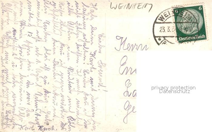 73559149 alte Postkarte Weinheim Bergstrasse Fliegeraufnahme postalisch gelaufen Erhaltung siehe scans [LiesaD40] KatCode: 11110008226096