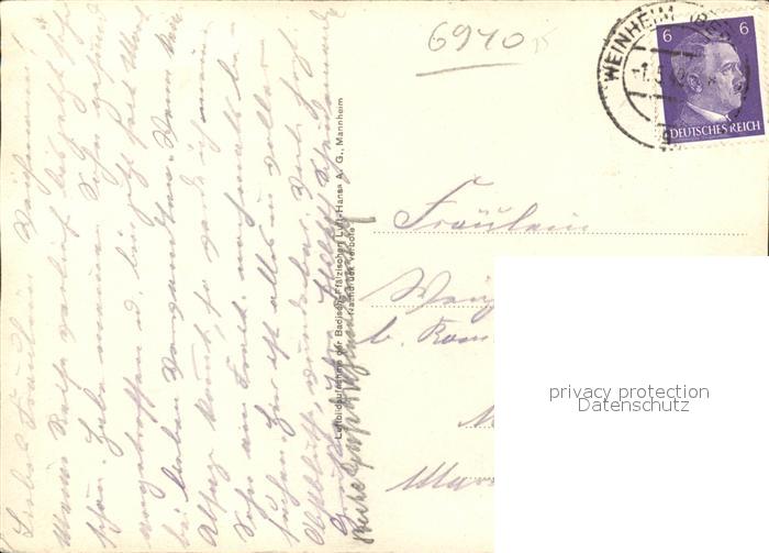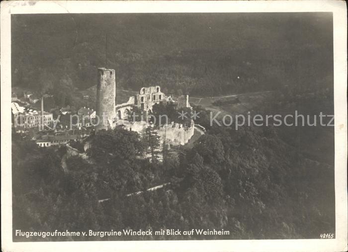 41753758 alte Postkarte Weinheim Bergstrasse Fliegeraufnahme v. Burgruine Windeck postalisch gelaufen Erhaltung siehe scans KatCode: 11110008226096