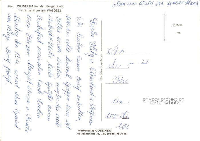 72522403 Weinheim Bergstrasse Freizeitzentrum am Waldsee postalisch nicht gelaufen Erhaltung siehe scans KatCode: 11110008226096