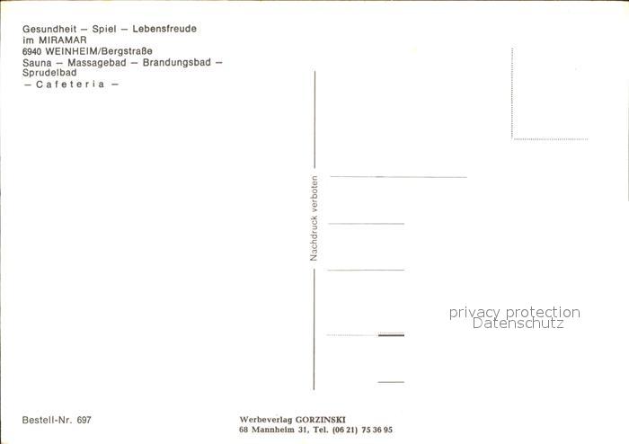 72580602 Weinheim Bergstrasse Freizeitzentrum Miramar postalisch nicht gelaufen Erhaltung siehe scans [KathaD79] KatCode: 11110008226096