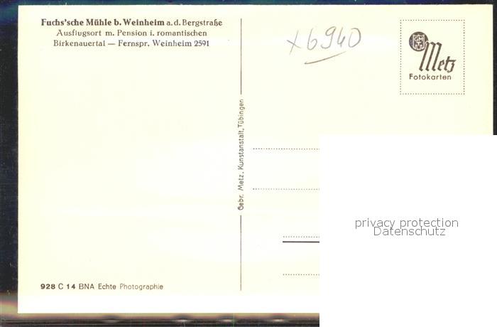 41988815 Weinheim Bergstrasse Fuchssche Muehle Gartenwirtschaft postalisch nicht gelaufen Erhaltung siehe scans KatCode: 11110008226096