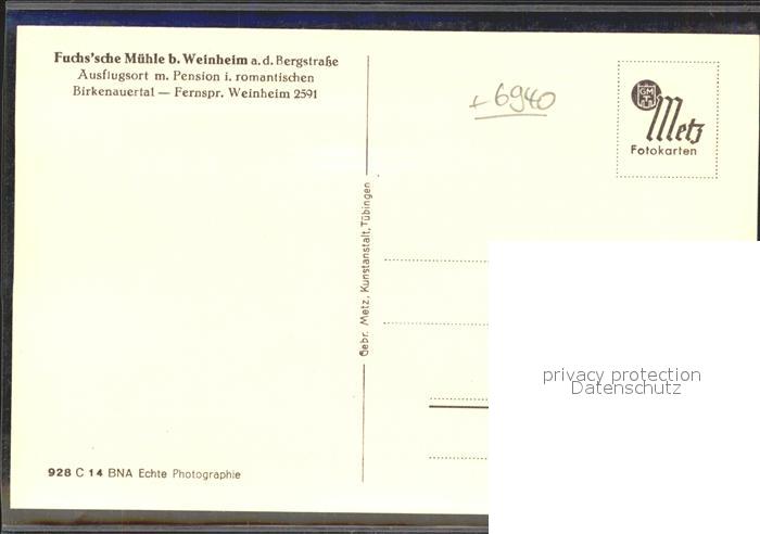 41990437 Weinheim Bergstrasse Gartenwirtschaft Fuchssche Muehle postalisch nicht gelaufen Erhaltung siehe scans KatCode: 11110008226096