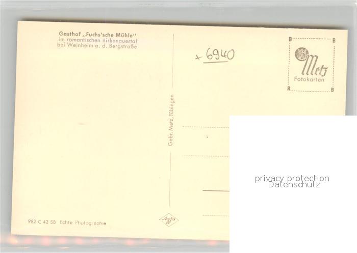 42932791 Weinheim Bergstrasse Gasthof Fuchs sche Muehle postalisch nicht gelaufen Erhaltung siehe scans [AndreD76] KatCode: 11110008226096