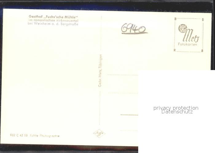 41988892 Weinheim Bergstrasse Gasthof Fuchssche Muehle postalisch nicht gelaufen Erhaltung siehe scans KatCode: 11110008226096