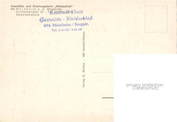73869500 Weinheim Bergstrasse Gaststaette Waldschloss postalisch nicht gelaufen Erhaltung siehe scans [WerneD78] KatCode: 11110008226096
