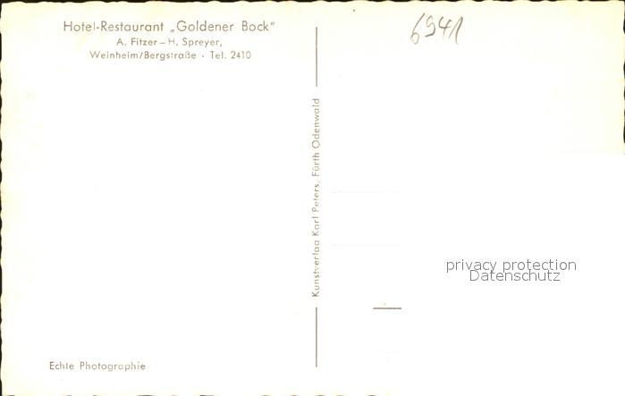 41586329 Weinheim Bergstrasse Hotel Restaurant Goldener Bock postalisch nicht gelaufen Alte Ansichtskarte Postkarte hz_F Katcode 11110008226096