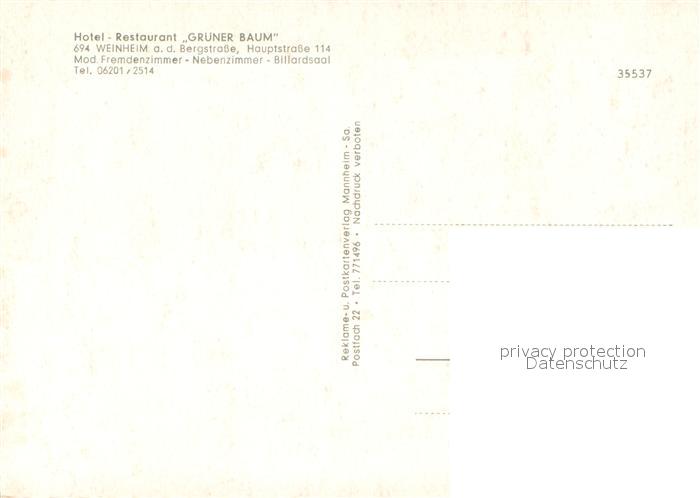 73726221 Weinheim Bergstrasse Hotel-Restaurant Gruener Baum Teilansichten postalisch nicht gelaufen Erhaltung siehe scans [LiesaD40] KatCode: 11110008226096