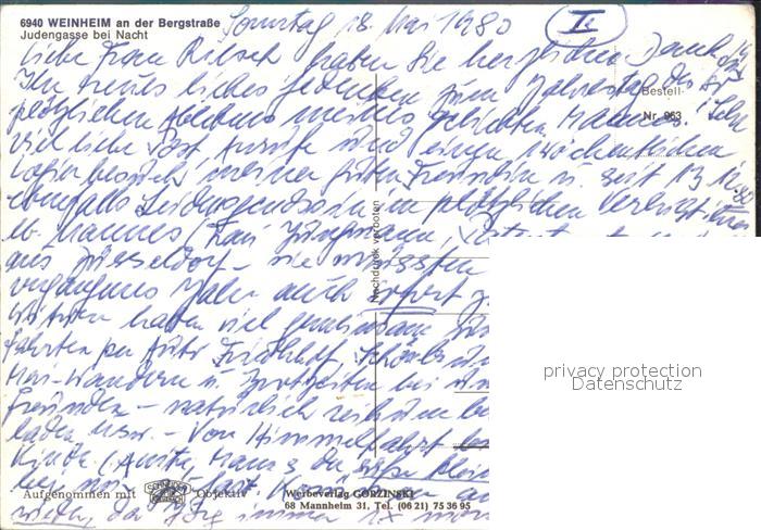 72098134 Weinheim Bergstrasse Jugendgasse bei Nacht postalisch nicht gelaufen Erhaltung siehe scans KatCode: 11110008226096