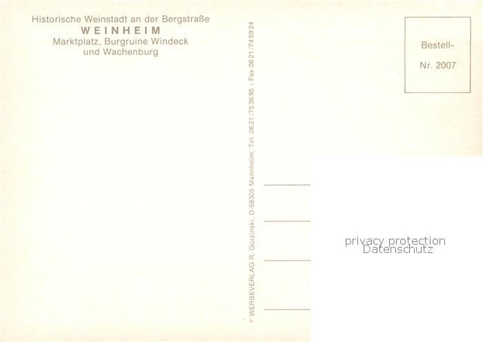 73214132 Weinheim Bergstrasse Marktplatz Denkmal Burgruine Windeck und Wachenburg postalisch nicht gelaufen Erhaltung siehe scans [FriedD77] KatCode: 11110008226096