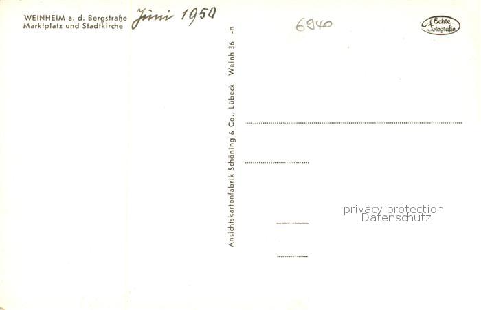 73136939 Weinheim Bergstrasse Marktplatz Stadtkirche postalisch nicht gelaufen Erhaltung siehe scans [FriedD77] KatCode: 11110008226096