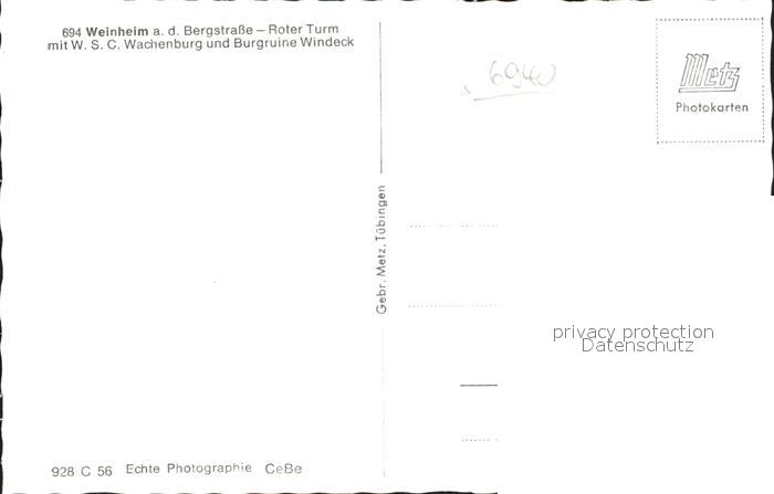 41986353 Weinheim Bergstrasse mit WSC Wachenburg und Burgruine Windeck postalisch nicht gelaufen Erhaltung siehe scans KatCode: 11110008226096