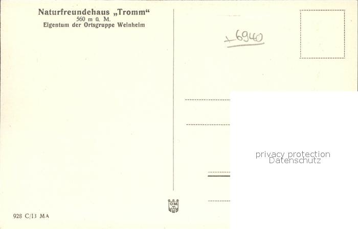 41990427 Weinheim Bergstrasse Naturfreundehaus Tromm postalisch nicht gelaufen Erhaltung siehe scans KatCode: 11110008226096