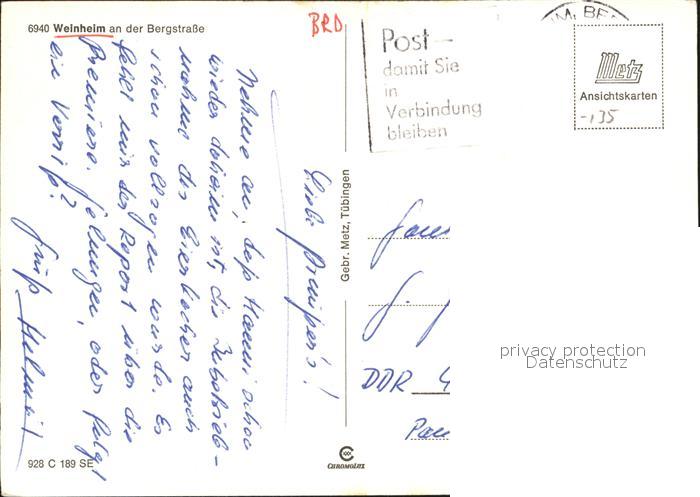 alte Postkarte Weinheim Bergstrasse Schloss postalisch gelaufen Erhaltung siehe scans