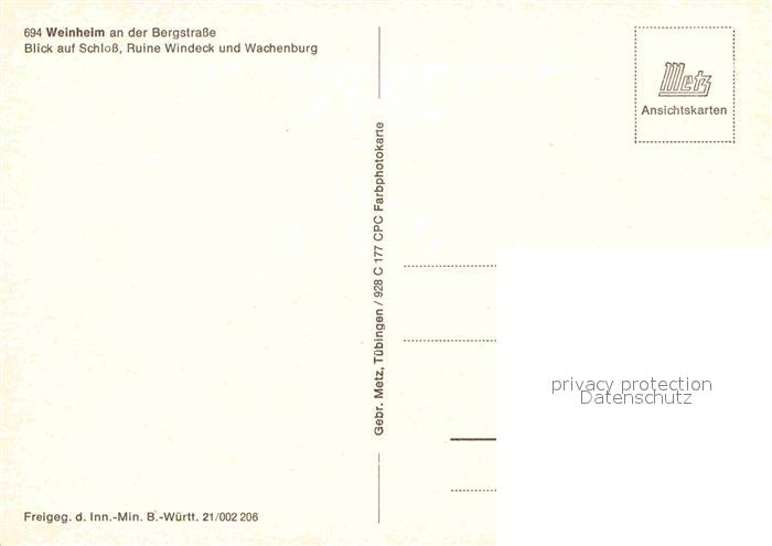 72798729 Weinheim Bergstrasse Schloss Ruine Windeck und Wachenburg Fliegeraufnahme postalisch nicht gelaufen Erhaltung siehe scans [FriedD77] KatCode: 11110008226096