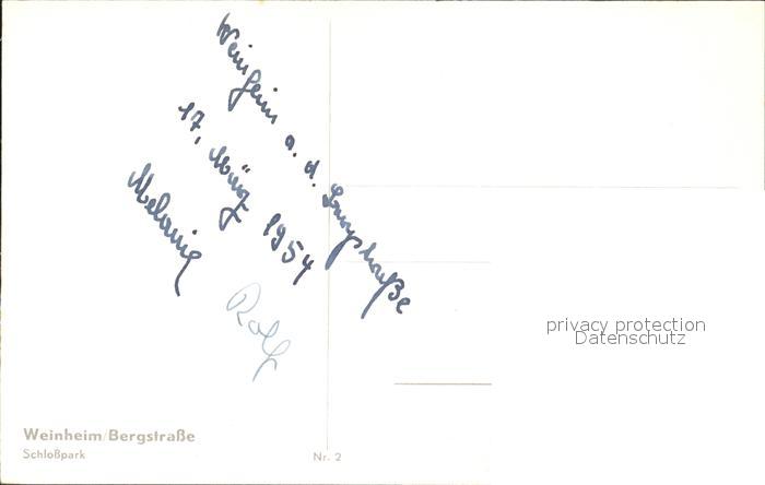 72096278 Weinheim Bergstrasse Schlosspark postalisch nicht gelaufen Erhaltung siehe scans KatCode: 11110008226096