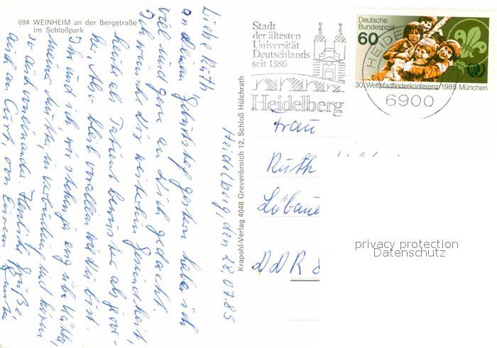 72631467 alte Postkarte Weinheim Bergstrasse Schlosspark postalisch gelaufen Erhaltung siehe scans [LiesaD40] KatCode: 11110008226096