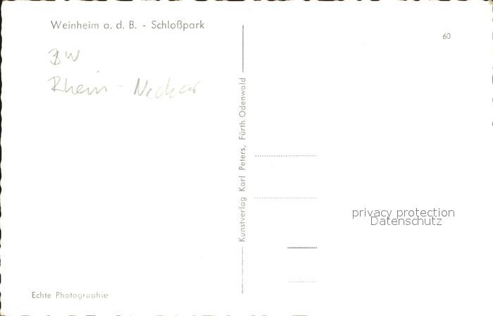 72477853 Weinheim Bergstrasse Schlosspark postalisch nicht gelaufen Erhaltung siehe scans KatCode: 11110008226096