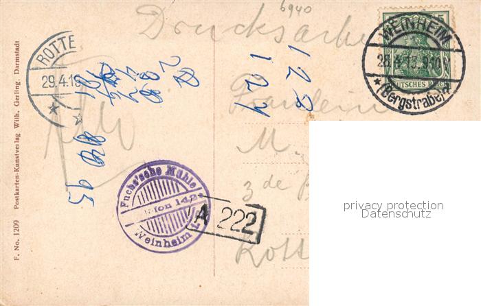73557893 alte Postkarte Weinheim Bergstrasse Stadtpanorama mit Wachenburg und Burg Windeck postalisch gelaufen Erhaltung siehe scans [FriedD77] KatCode: 11110008226096