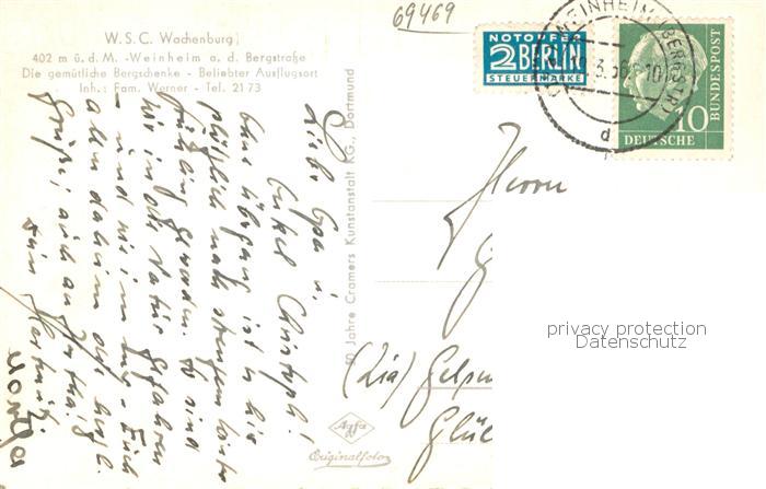 73763137 alte Postkarte Weinheim Bergstrasse W.S.C. Wachenburg Aussenansicht postalisch gelaufen Erhaltung siehe scans [LiesaD40] KatCode: 11110008226096