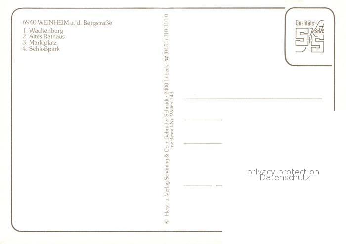 73226394 Weinheim Bergstrasse Wachenburg Altes Rathaus Marktplatz Schlosspark postalisch nicht gelaufen Erhaltung siehe scans [WerneD78] KatCode: 11110008226096