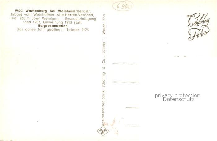 72926341 Weinheim Bergstrasse Wachenburg Bergrestaurant postalisch nicht gelaufen Erhaltung siehe scans [WerneD78] KatCode: 11110008226096