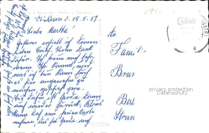 72478820 alte Postkarte Weinheim Bergstrasse Weiher im Schlosspark postalisch gelaufen Erhaltung siehe scans KatCode: 11110008226096