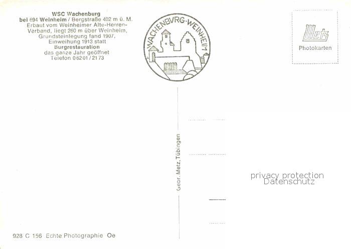 72885850 Weinheim Bergstrasse WSC Wachenburg postalisch nicht gelaufen Erhaltung siehe scans [FriedD77] KatCode: 11110008226096